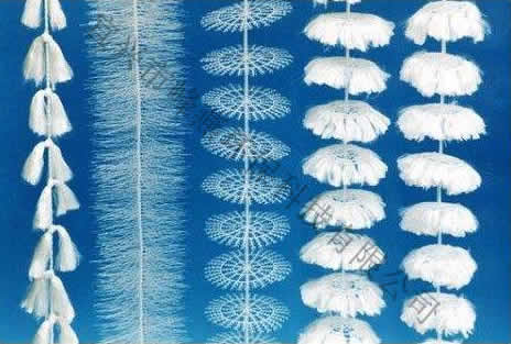 软性纤维填料是一种生物接触氧化法和压氧发酵法处理废水的生物载体。具有比表面积大、利用率高,空隙可变不堵塞,适应强,耐冲击负荷效果稳定,污泥产生量少、易管理、造价低、运转费用省,组装方便等优点。此填料以醛化维纶为基本材料,模拟天然水草形态加工而成。